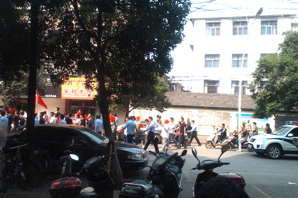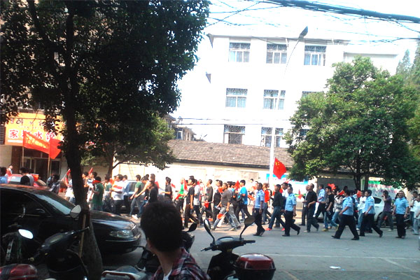 阜陽萬維網絡公司工作人員早上7:00在清河廣場集合,隨示威人群沿清河東路向東出發,喊出口號”打倒小日本、保衛釣魚島“,群情激揚,彰顯阜陽人愛我中國的熱情。當然阜陽萬維網絡公司人員堅持反對亂砸、亂打現象。