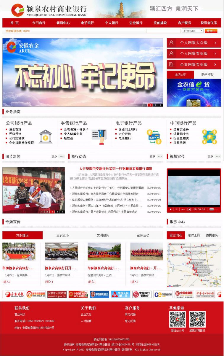 阜陽潁泉農商銀行總行位於北京中路99號,由於原網站版麵不能適應業務快速發展需要,銀行領導高度重視網絡窗口形象宣傳,擬選擇有實力網絡公司對網站進行改版、升級以及後期維護工作進行深度合作,經過對多家網絡公司比較,最終確定我司為其深度合作夥伴。我司UI設she計ji師shi對dui網wang頁ye進jin行xing認ren真zhen分fen析xi研yan究jiu,做zuo出chu多duo種zhong版ban式shi進jin行xing選xuan擇ze,銀yin行xing領ling導dao最zui終zhong確que定ding版ban麵mian。隨sui後hou程cheng序xu員yuan更geng是shi對dui網wang站zhan原yuan數shu據ju保bao護hu,確que保bao無wu一yi數shu據ju丟diu失shi。經jing過guo20多天的加班加點,100%完成領導交待的各項工作任務,後期工作還有很多,我們有實力、有信心、有能力完成各項工作任務。