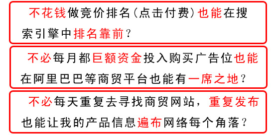 2、廣告麵廣:可以免費做各個搜索引擎和3000多個商貿平台的廣告,提高企業和產品的知名度;